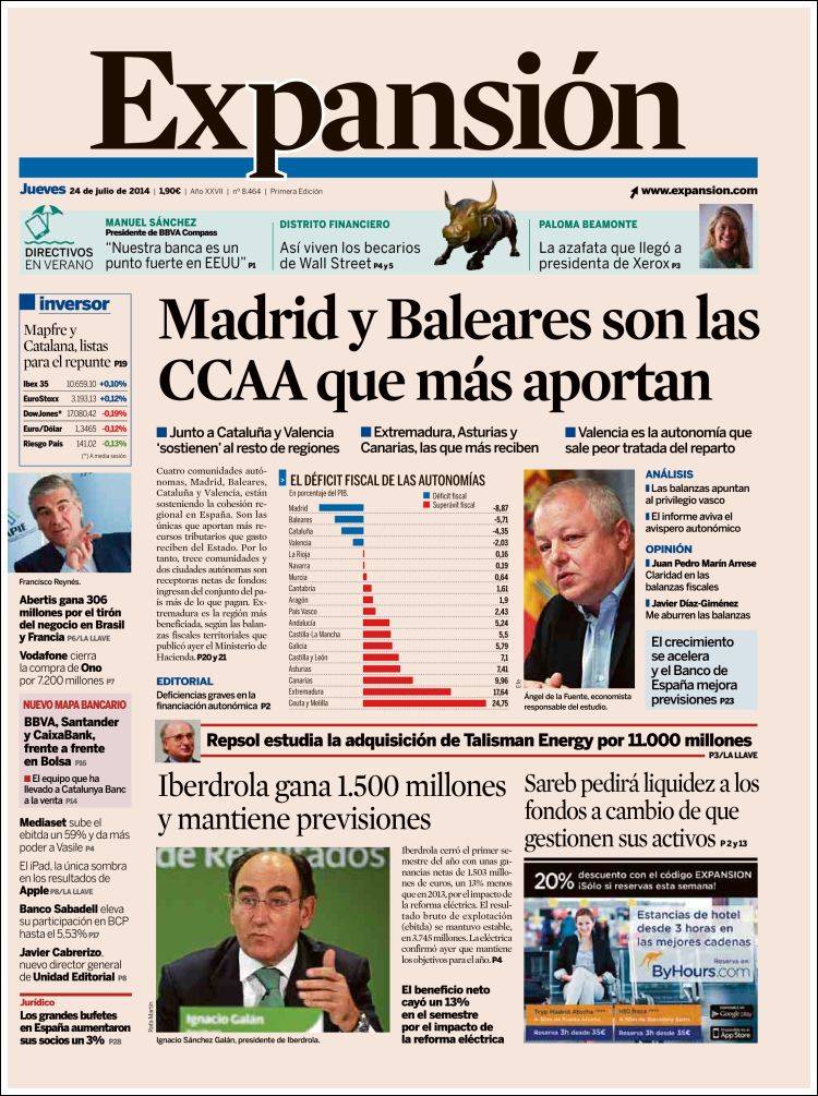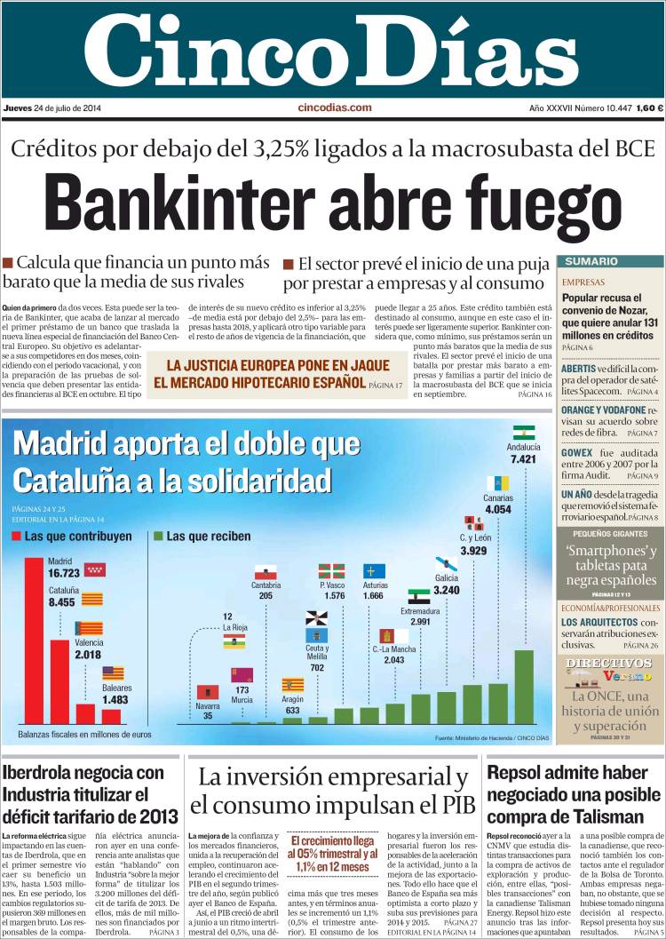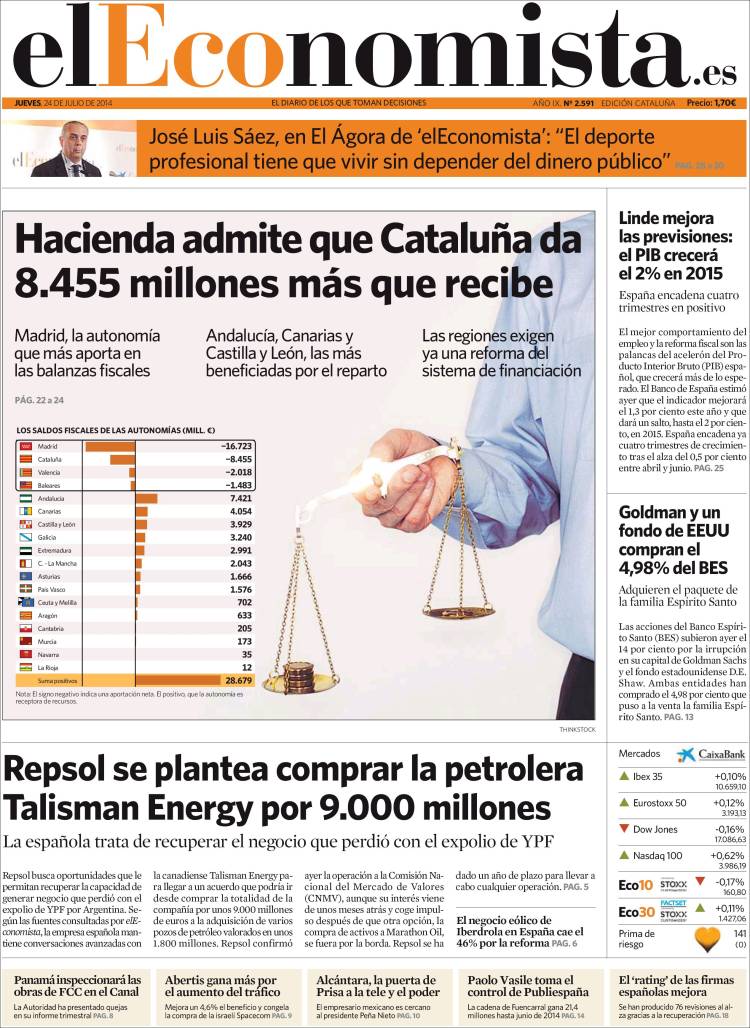 Se adjuntan las portadas de tres diarios económicos; aparte de matices, que los hay, la información de base coincide.