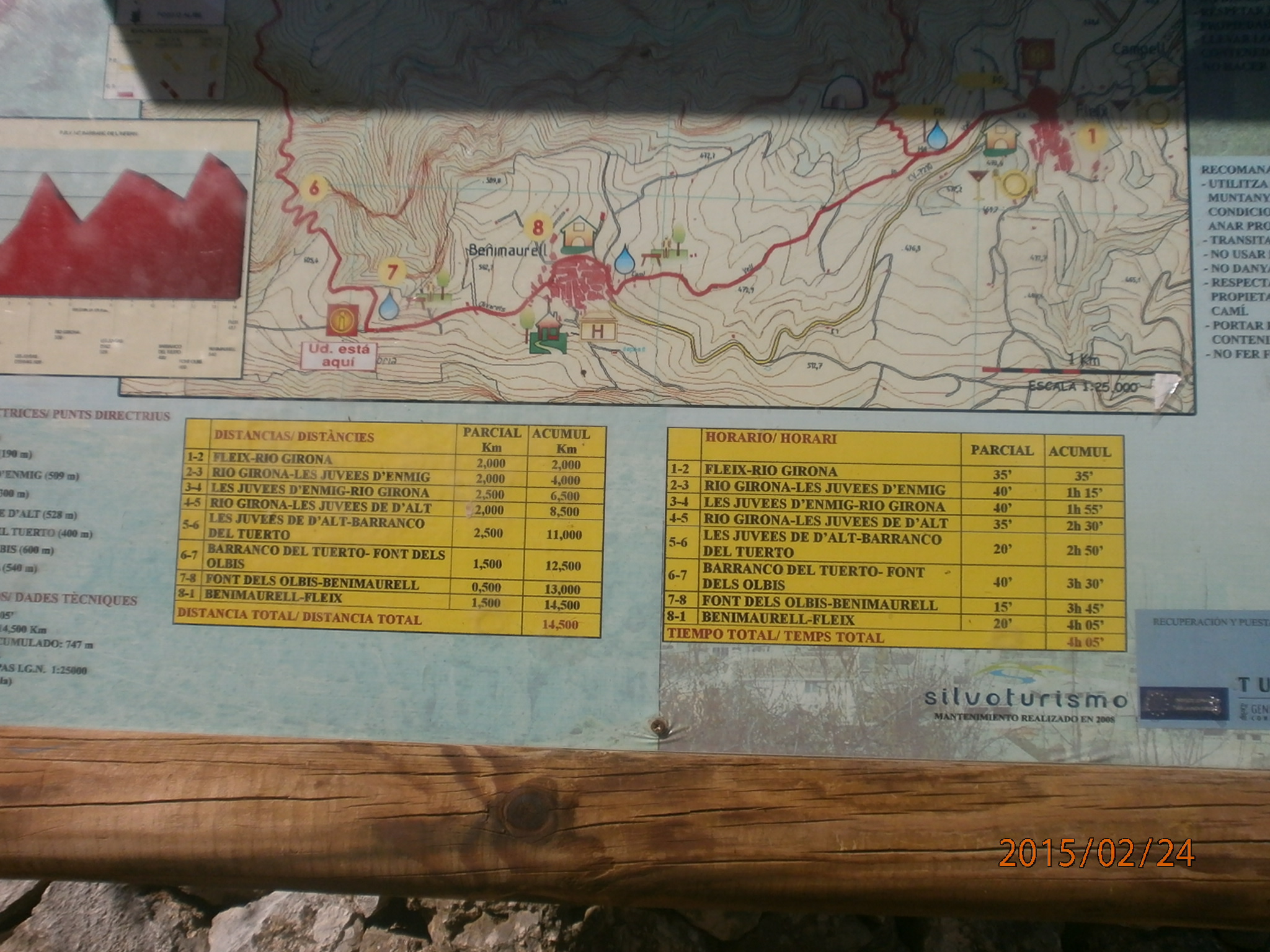 Habíamos recorrido esta ruta circulas hace unos diez años; ya tocaba repetirla!. Inicio la ruta en Fleix y a Fleix volví desde Benimaurell: es circular. Unos 14 kilómetros y alrededor de 800 metros de desnivel acumulado…y escalones, muchos escalones y terrazas. Mediterráneo y secano…valles minúsculos y profundos barrancos, hasta llegar al que da nombre a la ruta: impresionante.