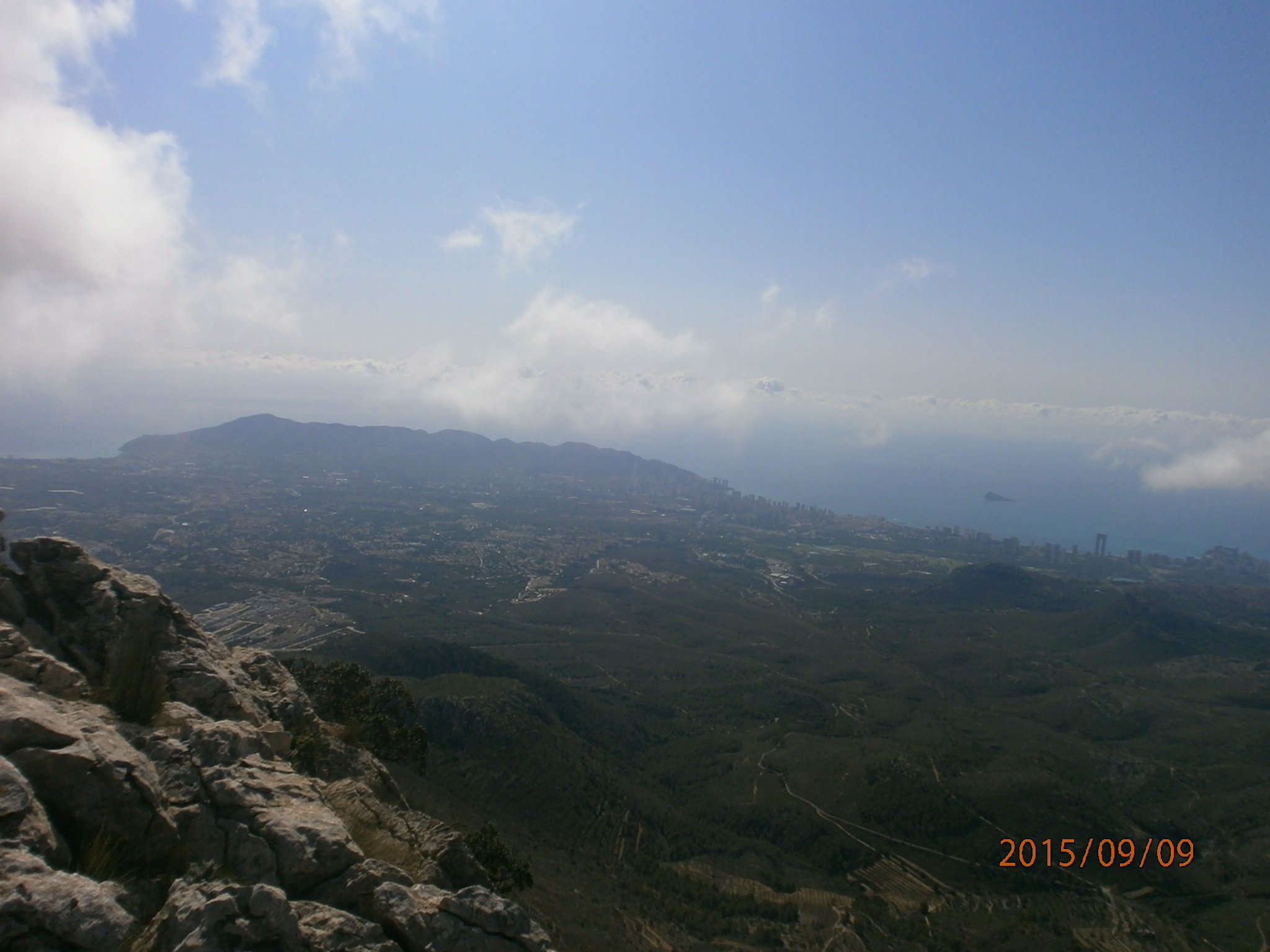 La sierra, la isla, la factoría… Al lado el Puig Campana. El inicio de esta ruta no me agradó demasiado, nada comparable al Puig; ahora bien el Pouet y el Llamp están próximos, de forma que podría hacerse: Finestrat / Font del Moli- Pedrera- Cima- Umbría- Pouet- Llamp- Ponoig- Pouet (dcha según bajas)-Font del Moli. Entiendo que, si aguantara, me llevaría entre 8 y 9 horas.