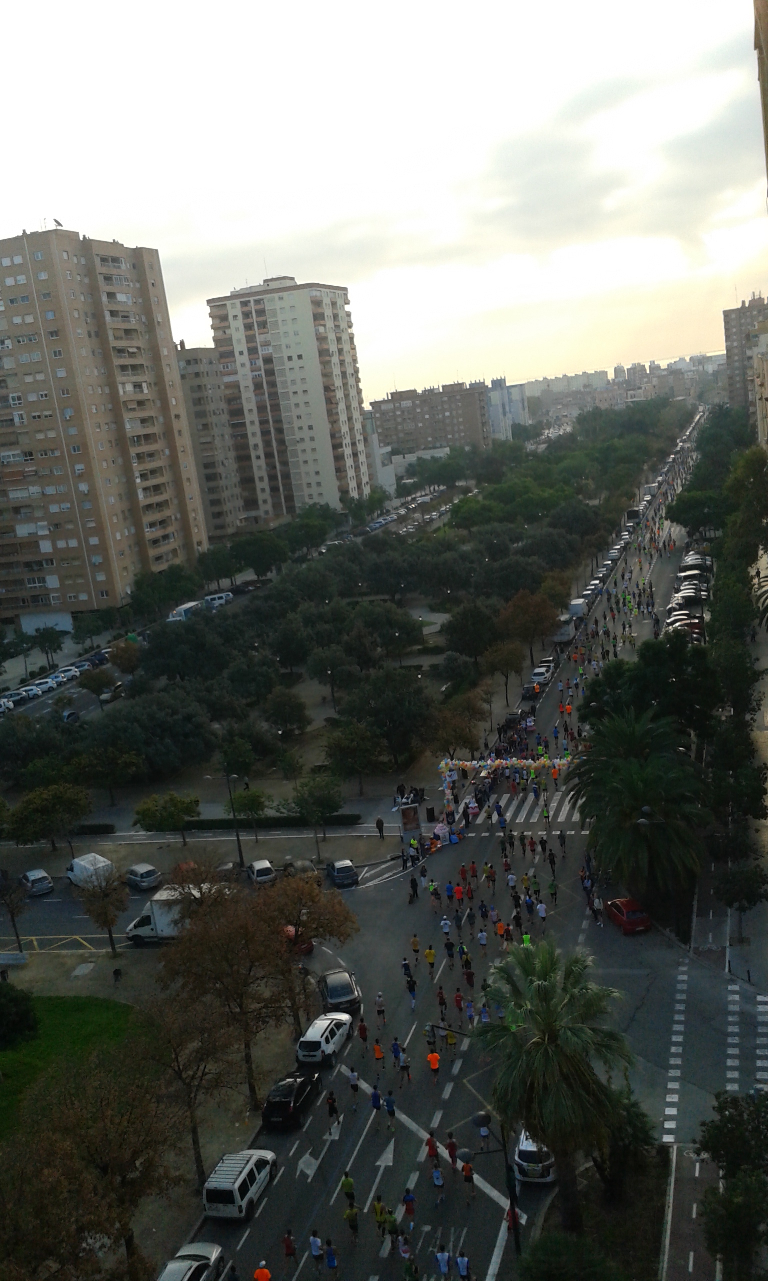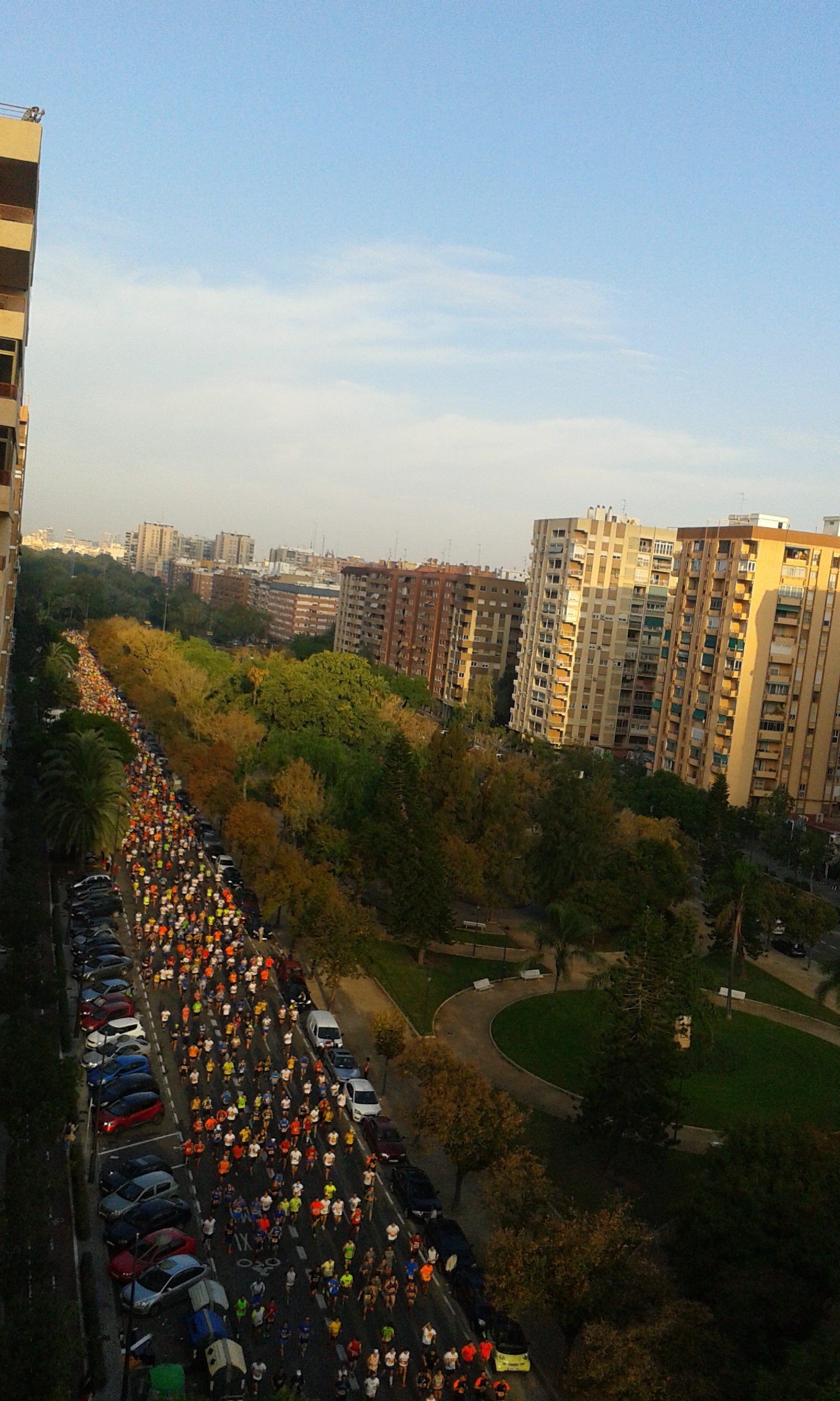 En Valencia se está corriendo esta prueba: una fiesta!. Así lo he percibido desde la ventana. Tiempo y tiempo pasando atletas ( según he podido ver en la red, hay 12.500 inscritos, de los cuales el 21% son mujeres y por tanto el 79% restante son hombres; alrededor de 50 nacionalidades…y participación en la calle). No es obra de un día, al contrario: saber hacer y constancia. Enhorabuena.