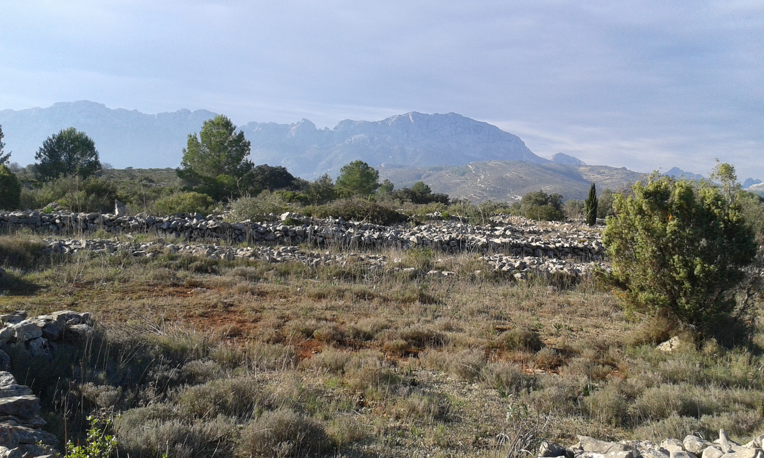 Después se camina por terreno prácticamente plano, se divisa Bernia, el mar…(Benisa, El Peñon…) y llegamos a Casas de Bernia (unas 3h y 30′). Segunda y última subida en dirección al Fort ( Tarbena allí, en lo alto… la devastación de los incendios, las resistentes palmeras…) y cambias de vertiente; ves la Marina Baja. Atraviesas una pedrera y bajas hacia la Font del Runar y las casas, tomas la “carretera” y a unos 20 metros, a la izquierda, te diriges hacia los paelleros para tomar la senda que lleva a les revoltes…bajas y bajas y bajas, para llegar a la urbanización, concretamente a la C/ Colina. El destino es la fuente del Garroferet y Altea la Vella; entre esto y lo de más allá, otras 3h y 30′