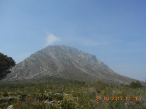 Desde el campo de tiro de Denia, el Montgo se ve como un «pedazo» de monte. El camino está muy bien hecho y mantenido; claro, es terreno karstico. Desde abajo,No se adivina la senda; esta comienza centrada, un poco a la izda, para ir luego bastante a la derecha (se pasa por la «gran» mancha ocre claro) y vuelve a la izda a pillar cresta.