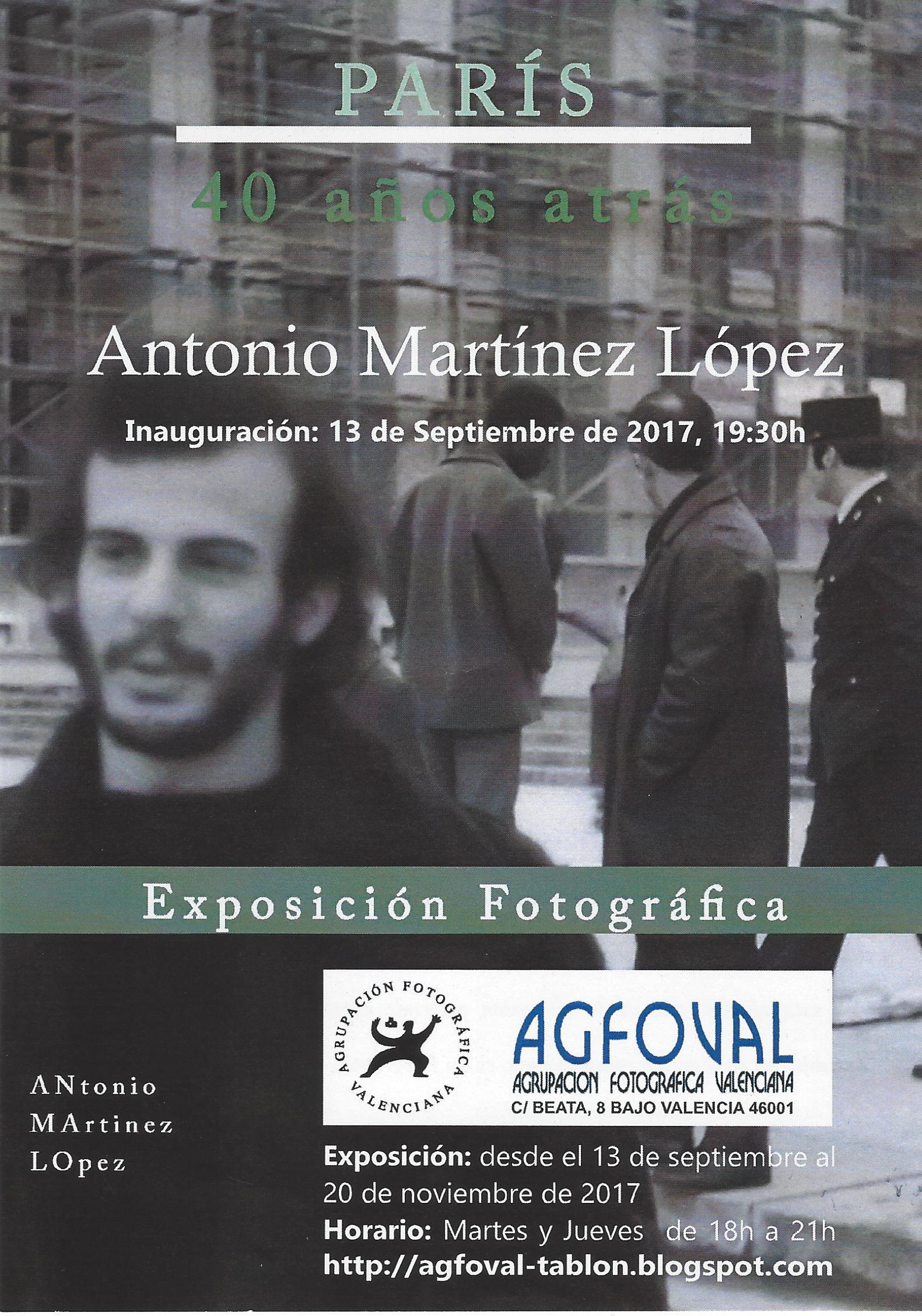 Montmartre. lle de la Cite, Les Hales. Trocadero. Marché aux puces, (Saint-Quen). Con esta exposición doy por iniciado un proyecto que deseaba materializar hace años, y espero que sea el comienzo de una serie más amplia, que avance año a año por ciudades y gentes, que desde entonces han sido el objeto y la atracción para mantener viva esta afición, que desde mi visión pretendo captar y trasmitir sensaciones y sentimientos en algo tan mínimo como es un fotograma.
