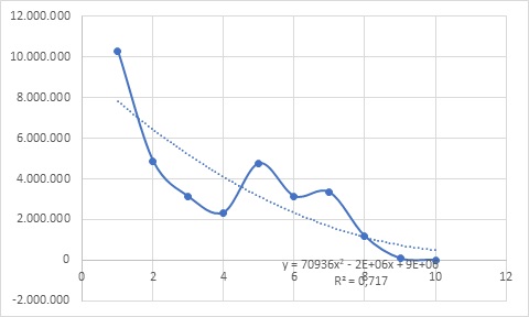 Se obtiene este gráfico, siendo la polinómica la mejor aproximación.