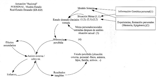 La existencia de un “Modelo Sistema” y “Situación Metas” (de dicho Modelo) es una elaboración –inconsciente, consciente-, cambiante y ya un producto de nuestro (4), de nuestra consciencia en sentido amplio, y las interacciones con el exterior y en interior.
