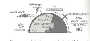 “…casi nadie duda que nada en el universo-las naves espaciales, los hámsteres- puede viajar por el espacio más rápido que la luz en el vacío: trescientos millones de metros por segundo”