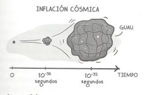 En el instante 10-32 segundos la estructura del espacio-tiempo (porque no había espacio-tiempo, solamente la singularidad) se expandió más rápido que la velocidad de la luz unos “25 órdenes de magnitud”; a partir de ahí los fotones pueden “transitar” por esa estructura (que siempre estará más allá): inflación cósmica. Así que en vez de la singularidad, parece que tenemos “Un grumito o grumote cuántico”