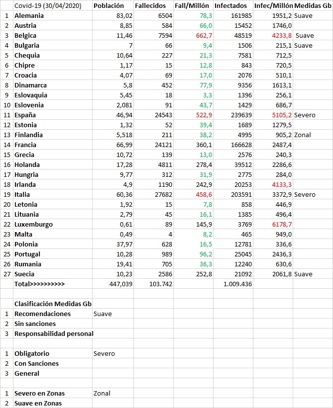 Si hay alguna clasificación de las medidas tomadas por los Gobiernos de la UE, agradecería me lo comunicaran; en principio, propongo una clasificación rudimentaria que consiste en tres tipos: