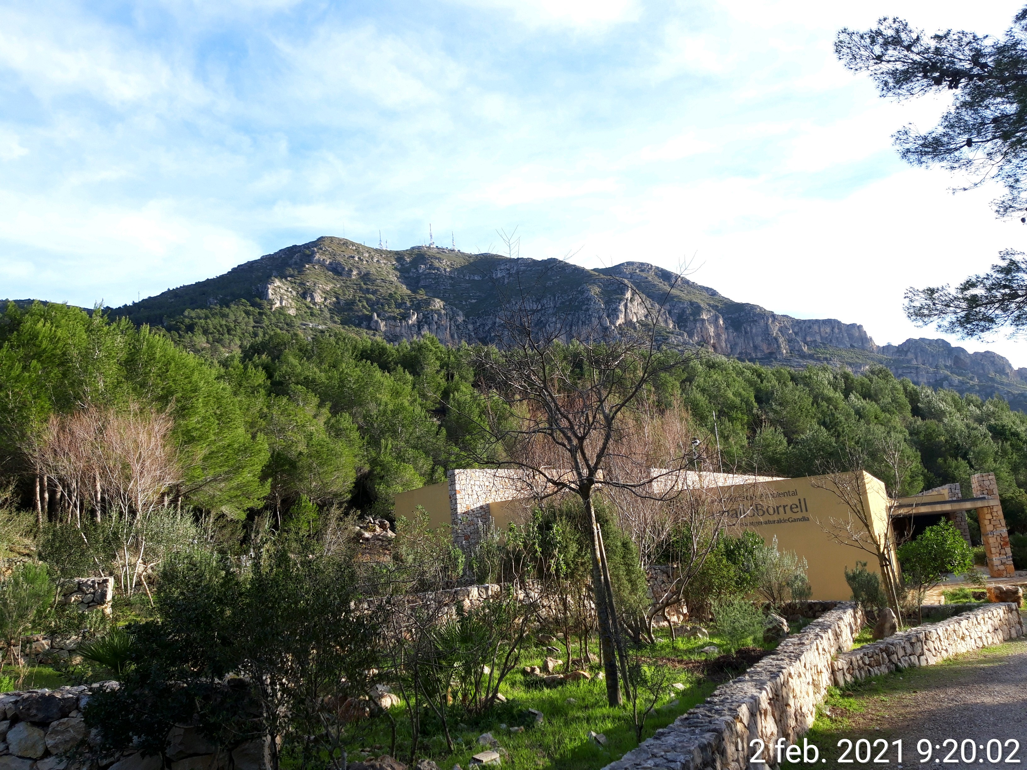 Se camina hacia la cueva de Parpalló y antes de llegar a ella, está la señal de desvío para la Cima. Es una agradable senda en el bosque de pinos y encinas (hoy he visto las dos primeras mariposas) y el romero, la aliaga y compañía están en flor. Esta senda acaba dónde se pilla la carretera de servicio a las antenas que están en la cima, vigilancia contra incendios…Se sigue la carretera y posiblemente haya ciclistas acometiendo la subida que ellos tienen calificada como «durita».