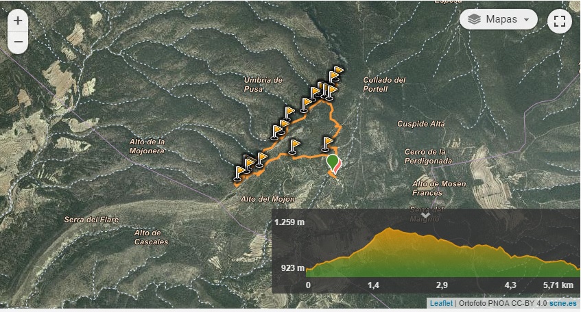 Desde dónde dejo el coche, me encamino a los refugios y al Despeñador; desde este, cerca de la cresta en ocasiones, al Pico del Fraile; se retrocede un poco y se baja la canal; se llega al Mirador de Catí y, se continua bajando a los Refugios y de estos, por escaleras, al aparcamiento.