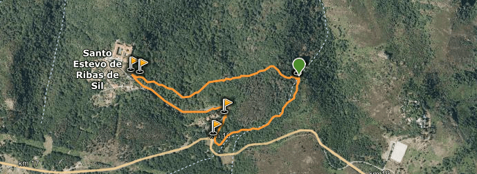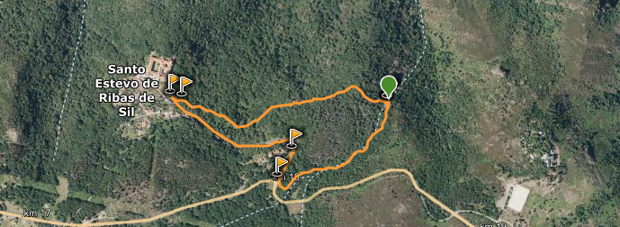 Como se ve, tiene tres tramos bien diferenciados, uno de los cuales es por carretera y dos por senda en bosque de castaños y robles. La senda es clara en todo momento; en uno de los tramos hemos ido acompañados por el agua cantarina del arroyo S Miguel (q luego forma la cascada de S Esteban)