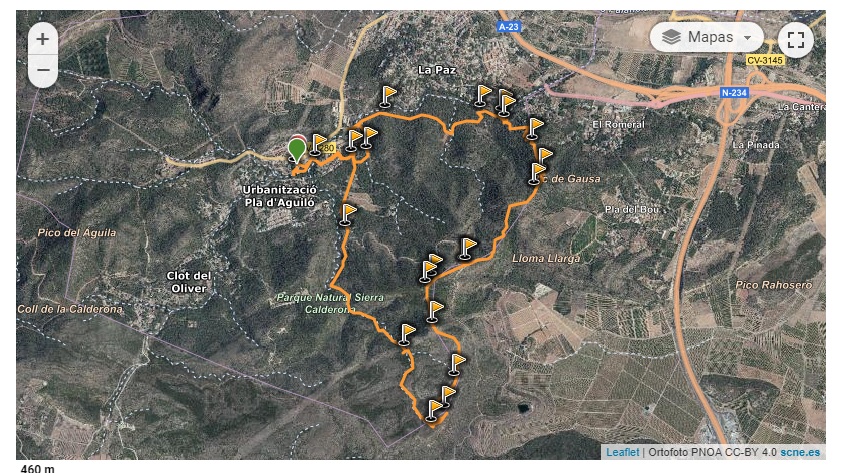 El siete de abril volví a Gilet; por la carretera del monasterio hasta el Rte El Reino (un clásico); cambio de calzado, mochila, bastones, track y: Hacia al Barranco de Balau, les Penyes de Guaita, Pico Gausa, el barranco de la Maladitxa y Fin.