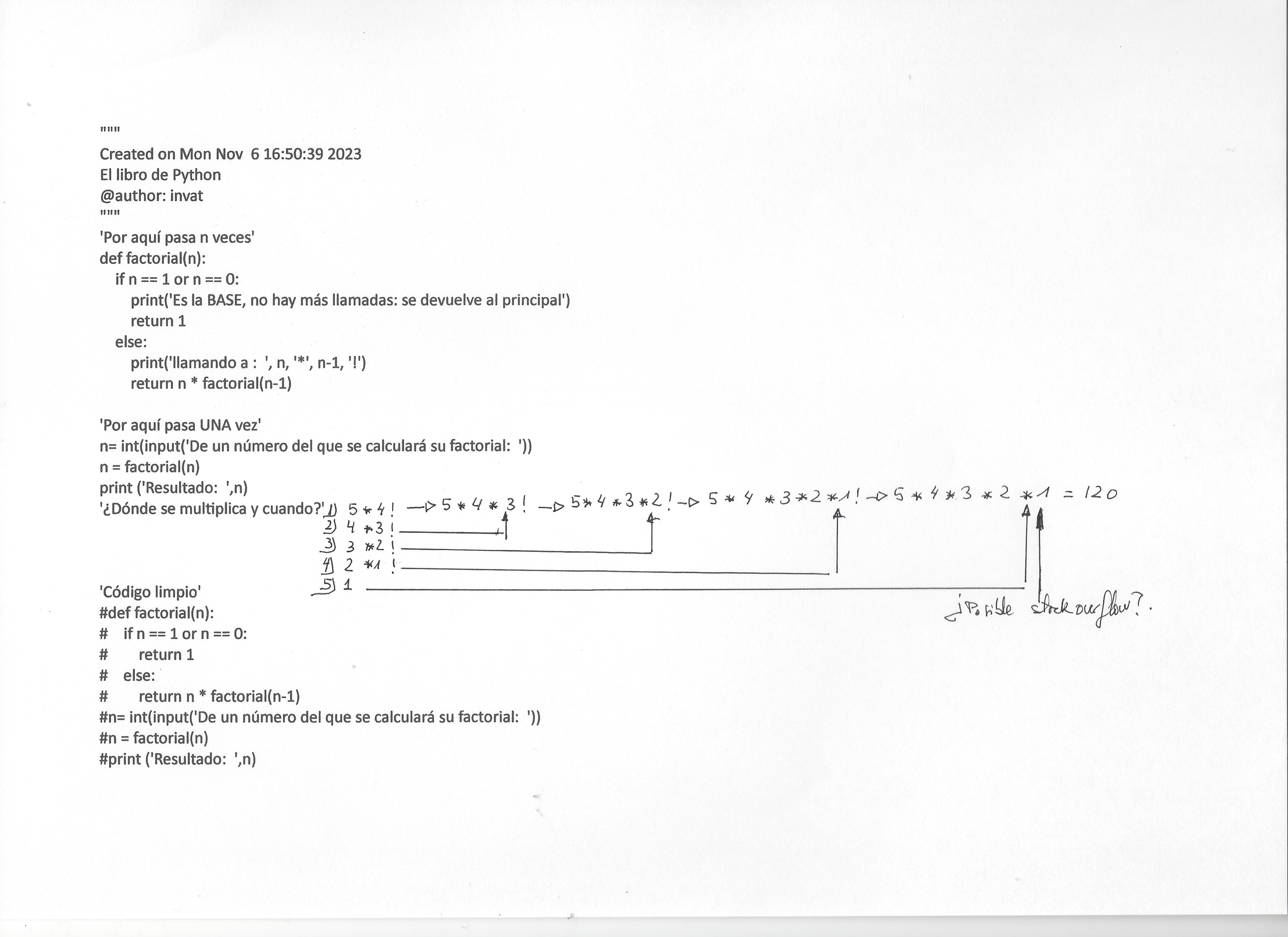 1-Por un lado tenemos la sección en la que la función se llama a sí misma.