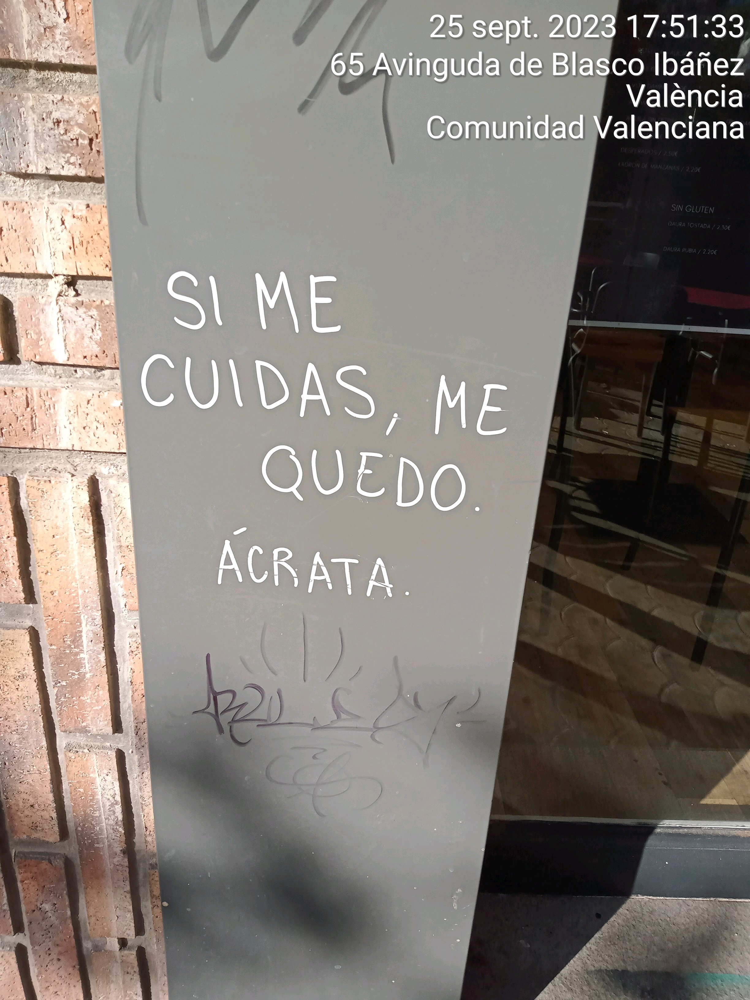 -Aquí está Ácrata que vuelva a la carga en las paredes, con sus reflexiones y sus dudas…¿Qué os parece?