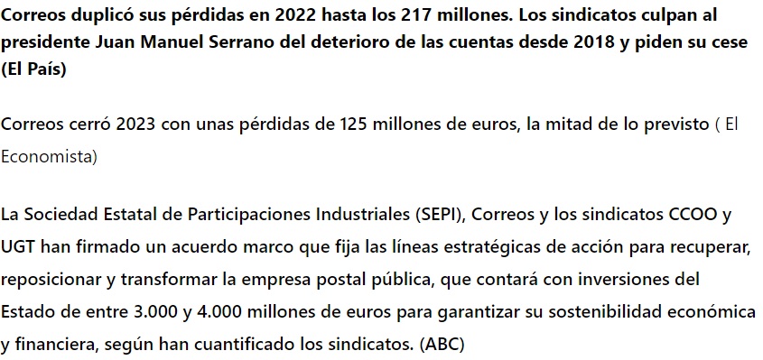 En A si pierde dinero, la empresa planteará una de las formas legales de modificación o cierre. En Correos se inyecta pasta de los presupuestos