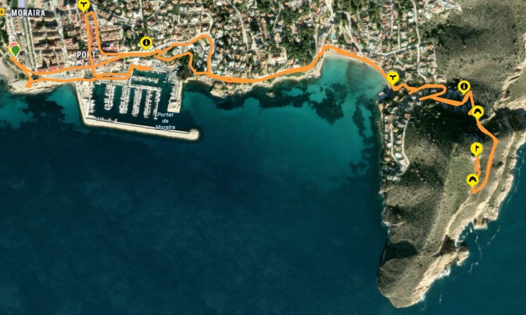 Es un tranquilo paseo para conocer un poco de Moraira; se da uno cuenta de que una cuestión es el nucleo urbano y otras, las urbanizaciones. La ruta discurre cerca del mar y sube al Cap d’Or por una senda bien conservada y que no presenta problemas (obviamente, es una «senda») El calzado las precauciones, los bastones u otras medidas deben ser las mismas de siempre. Viniendo de Valencia camino de Benidorm, me desvié a Moraira: seguí la ruta, tomé un café. No volví a la autopista, seguí el camino costeando hasta Calp (un poco peñazo atravesarlo) y por el Mascarat … En Alltea puede tomarse la autopista facilmente. Es interesante no retroceder a Teulada y Benisa para pillar la autopista, si no … costear: un mundo, ahí hay un mundo.