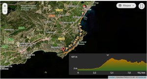 La ruta sigue, básicamente, el Corredor Verde de Altea y se superpone a la ruta Cami Reial ( O. Turismo Ayto Altea; ruta núm.1). Ampliamos, comenzando desde el Náutico. Paseo-ruta familiar, agradable, concurrida; por cierto, el desnivel acumulado no creo que llegue a los 70 metros