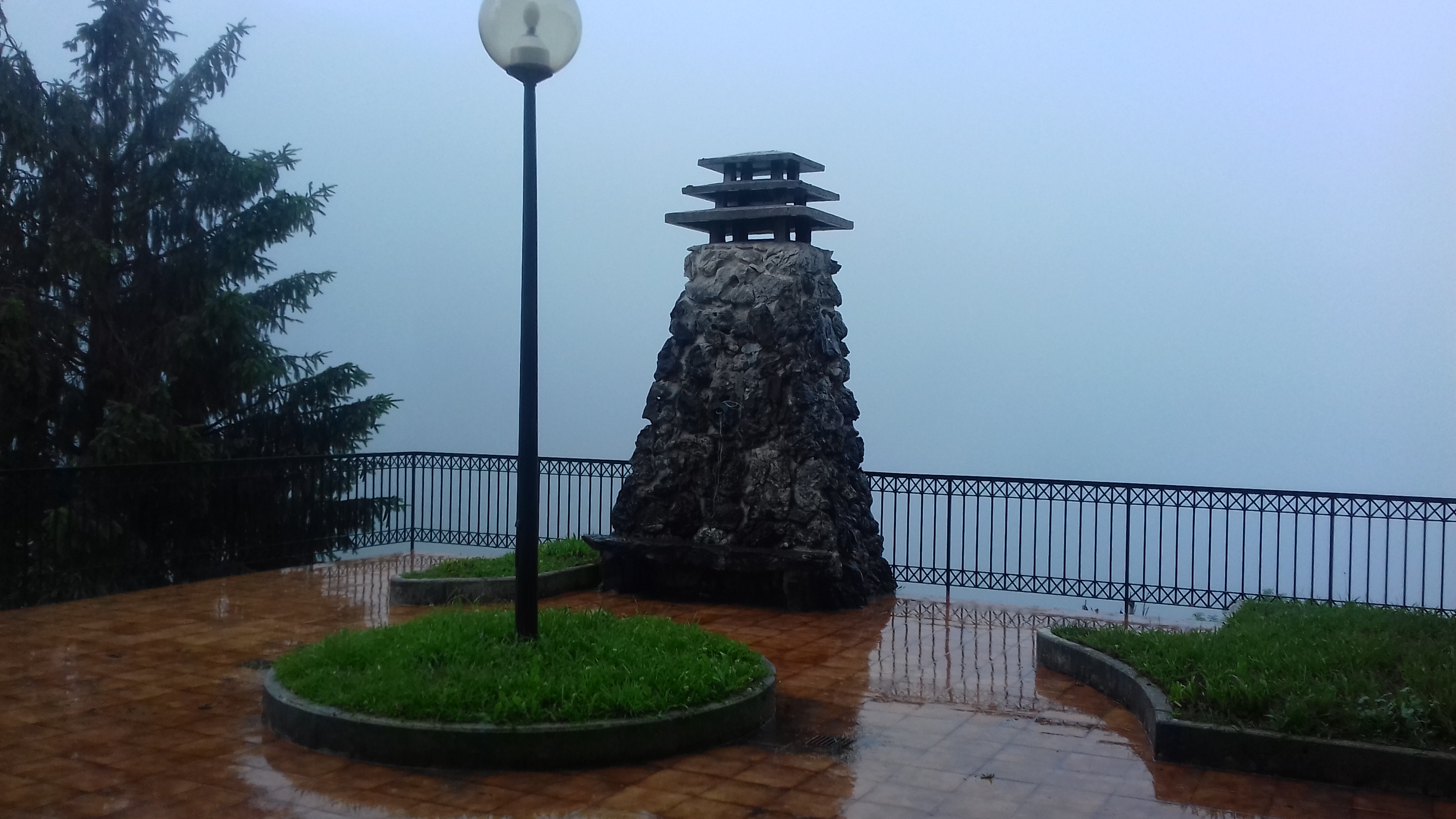 A las 14, comenzó a llover en Arantzazu (pero a llover) y subía deprisa la niebla ( recordar la alerta amarilla); la siguiente fotografía está tomada desde el hotel Sindika…bien, ahí, a 50 metros hay un pedazo de monte.
